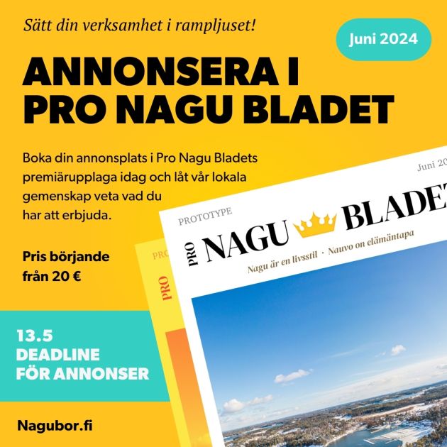 Pro Nauvo -lehti on lehti kaikille yksityishenkilöille, yrityksille ja yhdistyksille Nauvossa.